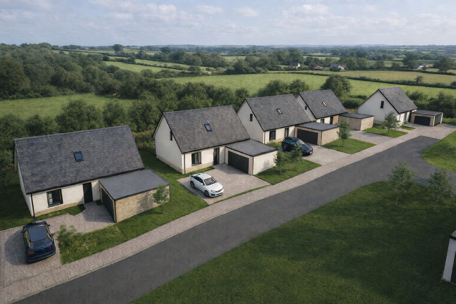 Co Create Architects have been appointed by a local developer to deliver a high-quality residential development on a greenfield site in Uffculme, near Tiverton. The scheme comprises ten new dwellings and has been carefully planned to integrate sensitively into the rural setting while responding to local character and landscape. The development is proposed in two phases of five homes.
